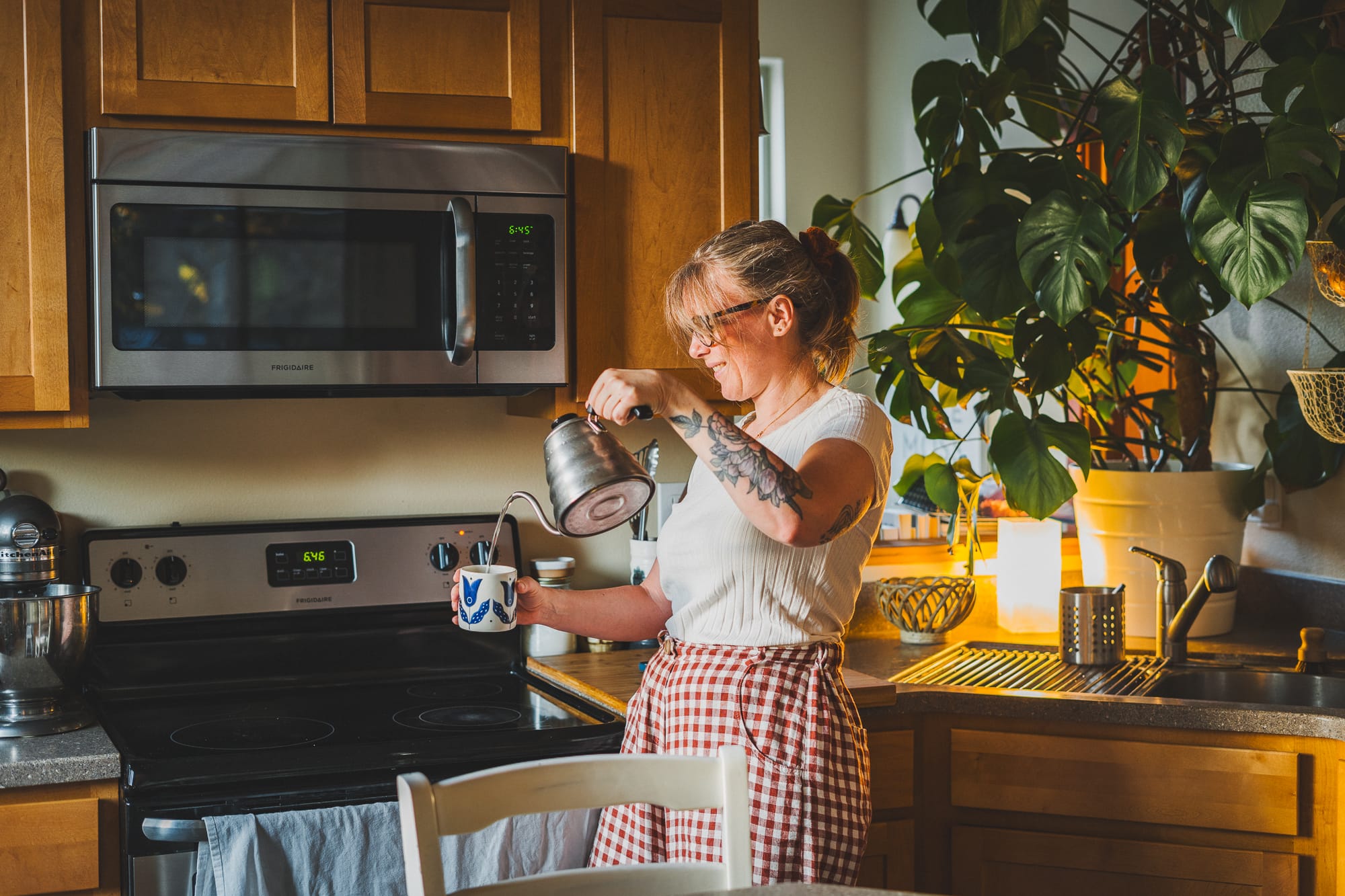 Fall also means hot drinks are back on the menu. I like to create a small “tea station” with jars of my favorite blends. I’m currently on the hunt for a glass or stainless steel tea kettle that indicates the best temperature for different kinds of teas—if you have recommendations, let me know!