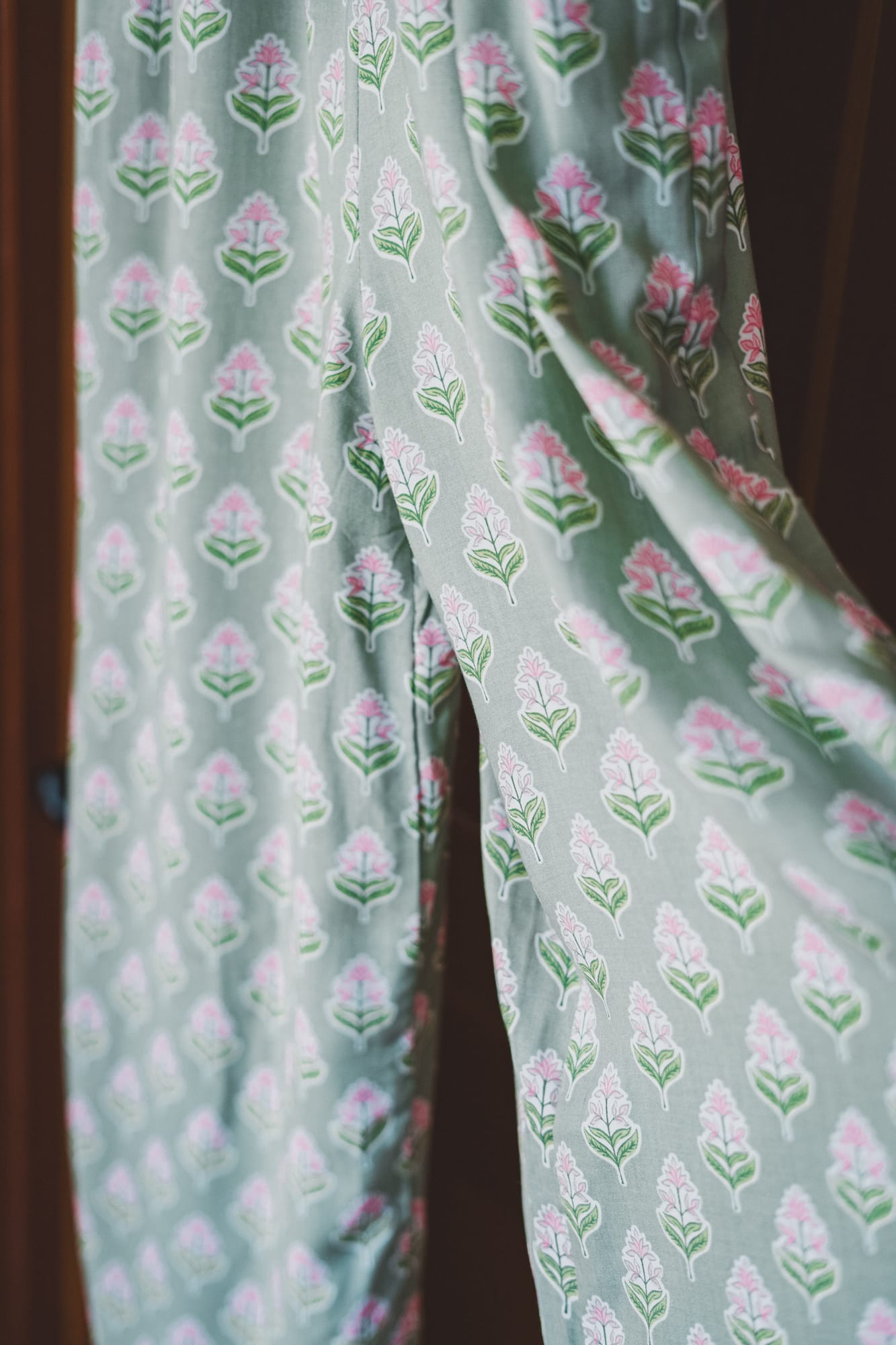 This piece was a bit of a communal experience — so many people tried it on throughout the evening, only to agree that the torso was just too short. I waited until later, once it was clear it hadn’t found its match, and decided to give it a try myself. Instead of forcing the fit, I plan to transform it into a set by separating the shirred top from the flowy bottoms. The lightweight fabric will make the perfect pair of pajama pants to lounge in at home — or to wear out to the market with an oversized cozy sweater.