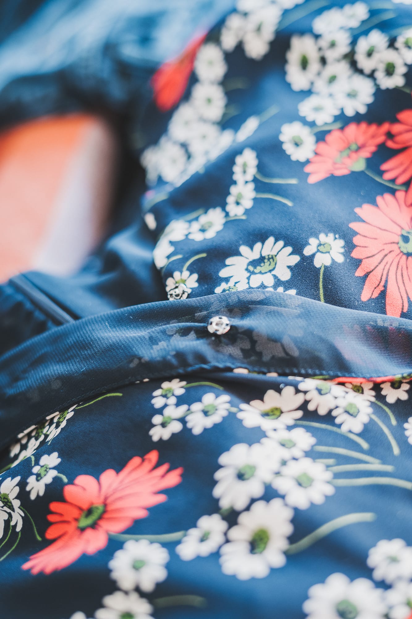 The neckline was a little too open for my liking, so I added a discreet snap button to keep it from gaping. It’s amazing how such a small tweak makes the piece feel totally wearable. I also noticed that the sleeve ties had been cut off, I might try to find a way to get them to look like the original.